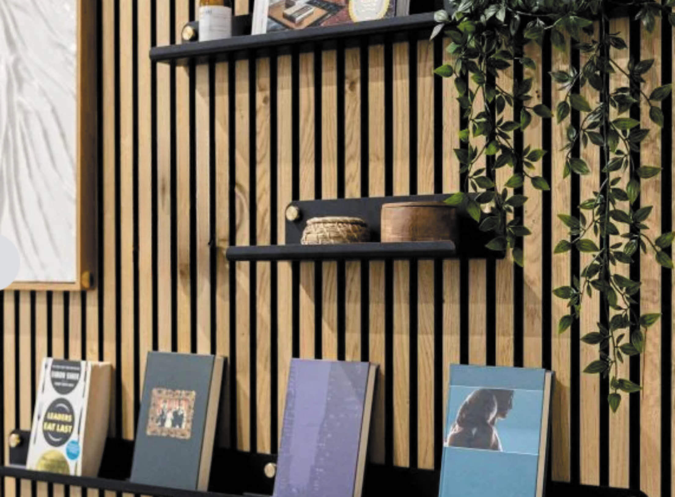 Revêtement mural en bois véritable à l’effet «claire-voie» chic.